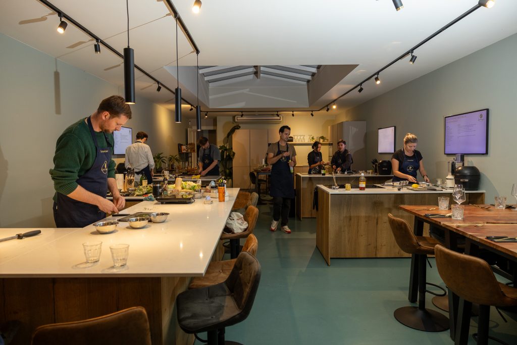 Je kookt in groepjes een compleet menu, leert technieken die je thuis ook kunt gebruiken, en geniet samen van wat je gemaakt hebt. Bon appétit!